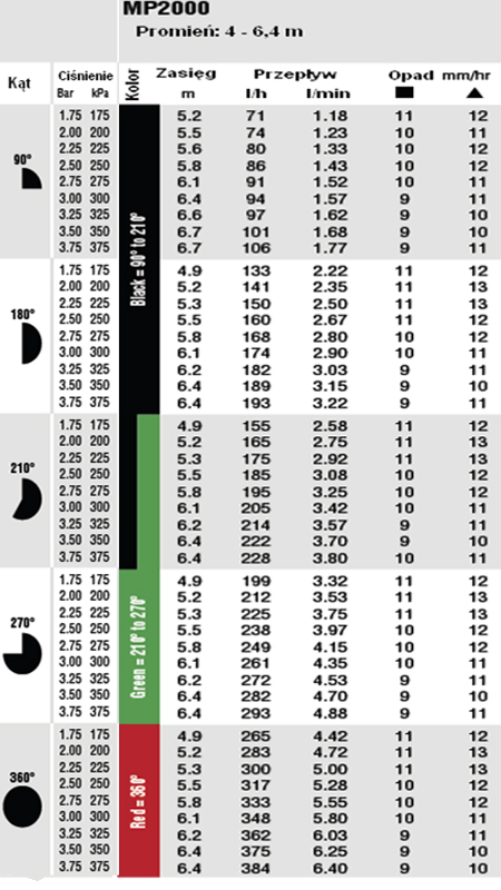 Dysza rotacyjna MP 2000 90-210°